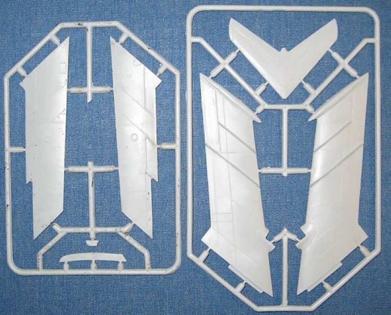 Die Tragflächenteile sind so aufgebaut, dass Vorder- und Hinterkante solide ausgeführt werden. Die Hinterkanten sind ansprechend scharfkantig und auch die Grenzschichtzäune machen einen vorbildgetreuen Eindruck. Das Höhenleitwerk ist einteilig. Dies verursacht zwar eine schwierigere Einpassung in das Seitenleitwerk, ist dafür aber stabiler und gewährleistet eine bessere geometrische Ausrichtung.