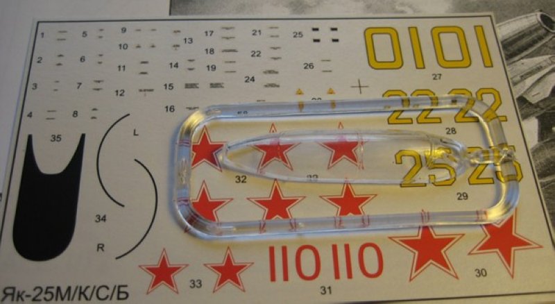 Der Abziehbilderbogen ist universell für alle Jak-25 Versionen von AModel und ist sehr ordentlich und versatzfrei gedruckt.