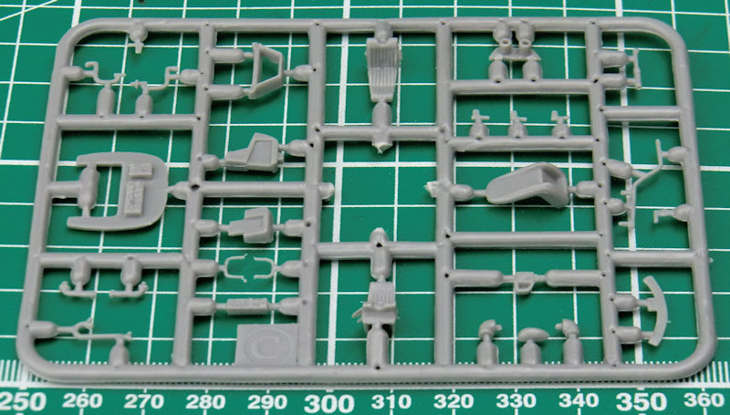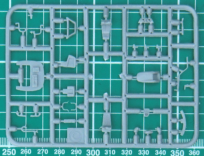 Das Cockpit hat eine Inneneinrichtung. Hier gibt es immerhin ein paar Sitze, Steuerknüppel, ein Instrumentenbrett, eine Trennwand und weitere Kleinteile sowie diverse Ausrüstungsgegenstände. Leider wirkt es etwas leer und bietet Potential für Detaillierungen. Die Türen bleiben zum Glück alle zu und daher sollte für die meisten Modellbauer ausreichen wenn man die Sitzgurte ergänzt. Der Rotorkopf ist recht ordentlich detailliert aber im Detail nicht ganz stimmig. Hier sollte man zu mindestens Bilder der spanischen Version studieren.