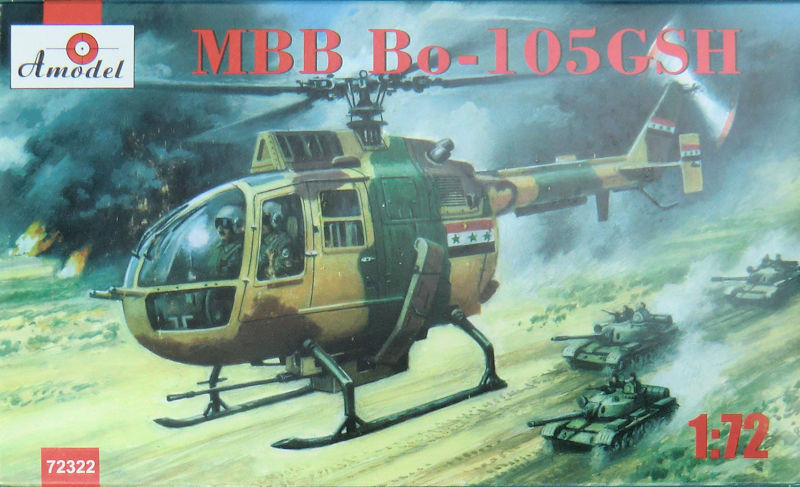 Bausatz: Seit 2014 erscheinen immer wieder bei Amodel Varianten der Bo 105 in 1/72. Der 1978 erschienene Airfix-Bausatz wäre die einzige Alternative in diesem Maßstab und diese ist seit einigen Jahren auch nicht erhältlich. Revell bietet diesen sehr erfolgreichen Hubschrauber nur in 1/32 und 1/48 an.