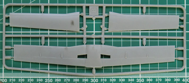 Allerdings ist die Passagierkabine leer. Auf jeder Seite werden vier Seitenfenster von außen eingeklebt. Im Triebwerksbereich gibt es die Schaufeln von vorn und hinten zu sehen. Der Zusammenbau der Tragfläche ist clever gelöst. So gibt es eine durchgehende Unterseite mit scharfen Hinterkanten. Die Winglets bestehen aus jeweils einem Teil.