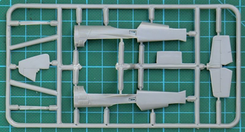 Die Motorhaube ist geschlossen. Somit gibt es auch keine Motornachbildung. Bei den beiden oberen Teilen der Tragfläche sind die großen Ruder anmodelliert. Somit gibt es an allen Rudern scharfe Hinterkanten. Amodel hat das Seiten- und Höhenleitwerk aus jeweils einem Stück gefertigt. Das Seitenleitwerk unterscheidet sich deutlich von der Su-31. Für die Fahrwerksmontage hätte ich mir eine Frontansicht gewünscht. Diese findet man im Internet.