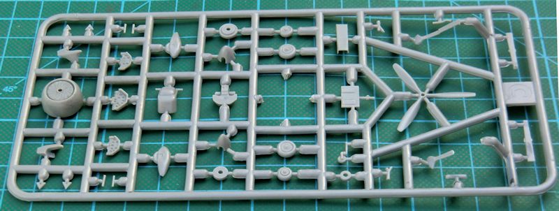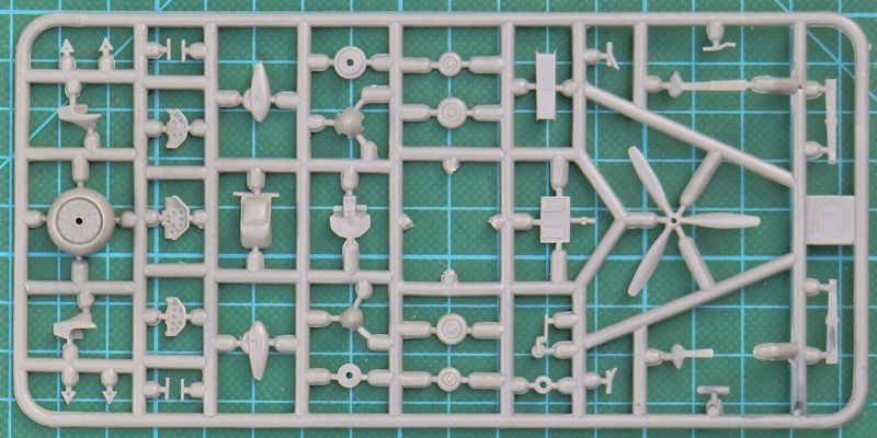 Der Bau beginnt mit der Luftschraube. Diese besteht aus einem Stück und hier müssen Spinner, Achse und eine Scheibe aufgeklebt werden. Das Cockpit ist rustikal. Hier gibt es einen Sitz, die Bodenplatte, einen Steuerknüppel, den Instrumententräger und das eigentliche Instrumentenbrett. Mindestens die Sitzgurte sollte man ergänzen, denn durch die vielen Klarsichtteile erhält man einen guten Einblick.