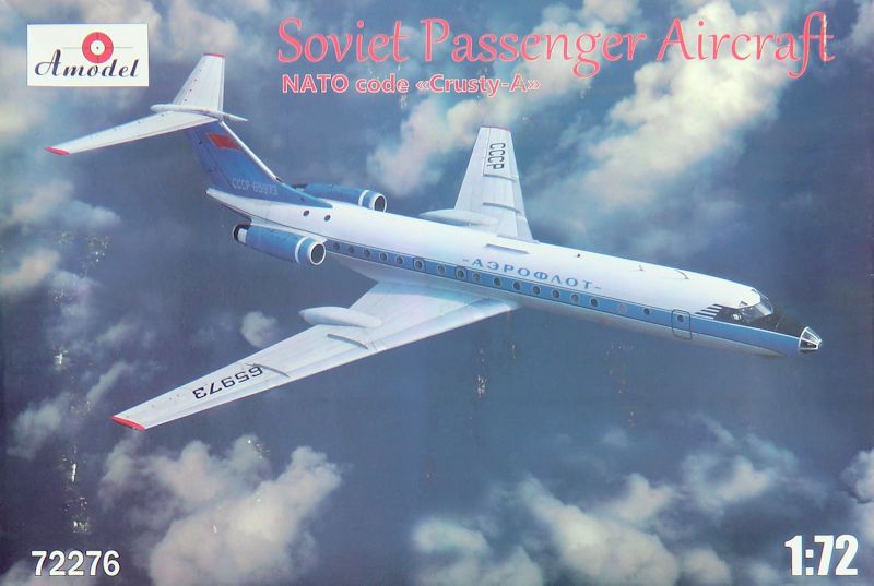 Bausatz: Amodel überraschte auf der Spielwarenmesse mit einem Bausatz der Tupolew Tu-134A mit Glasnase. Im attraktiven Stülpkarton befinden sich gut verpackt 13 hellgraue Spritzlinge mit 141 Teilen, drei Klarsichtrahmen mit 29 Teilen, ein kleiner Fotoätzteilbogen, ein Decal und die Bauanleitung. Amodel verzichtet auf eine Typenbezeichnung auf dem Karton sowie in der Bauanleitung und so nennt man nur den NATO-Code und die nichtssagende Bezeichnung: Soviet passanger aircraft.