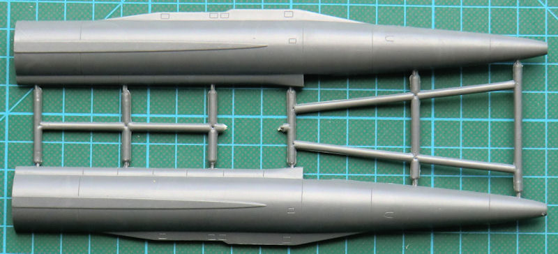 Ich persönlich habe kaum verwertbares Bildmaterial über das Vorbild gefunden. Daher vertraue ich mal den Hersteller. Das Cockpit besteht aus fünf Teilen. Fürs Instrumentenbrett gibt es ein Decal. Der Rumpf besteht aus vier Teilen. Die beiden Triebwerksgondeln bestehen aus je sechs Teilen und die Triebwerksein- und -auslässe sind gut detailliert.