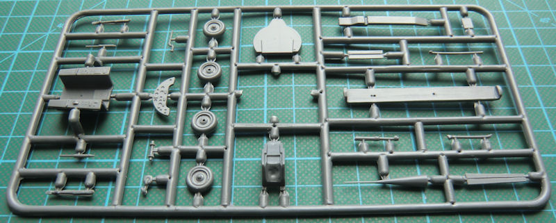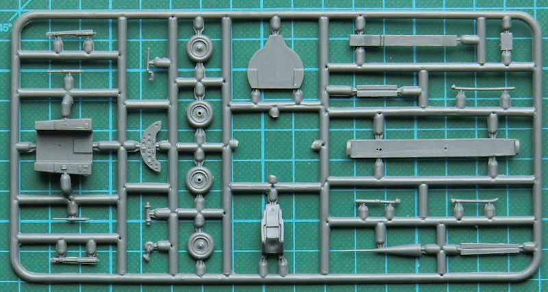 Bausatz: Dieser Bausatz kann nur von Amodel erscheinen. Der passt voll in das Programm dieses Herstellers. Im praktischen Stülpkarton befinden sich gut verpackt sieben dunkelgraue Spritzgussrahmen mit insgesamt 56 Teilen, ein Klarsichtteil, ein kleiner Decalbogen sowie die übersichtliche Bauanleitung.