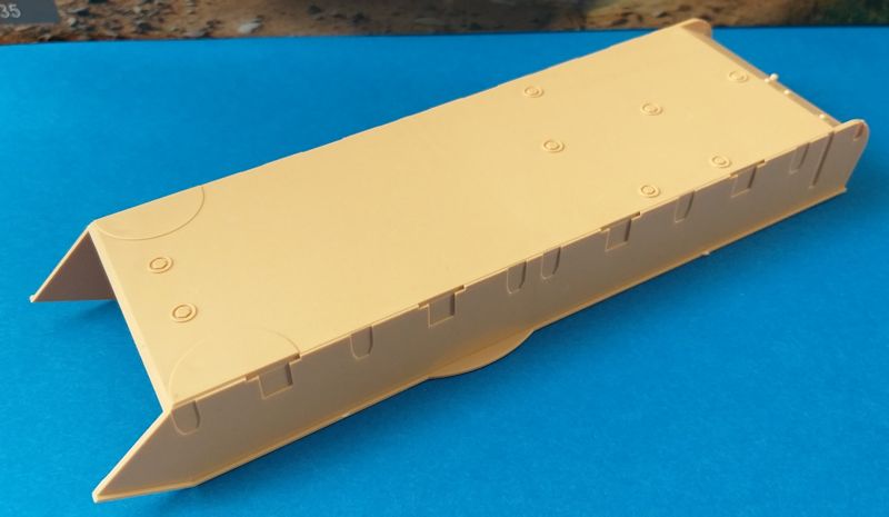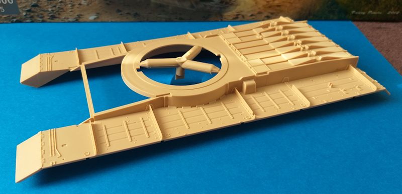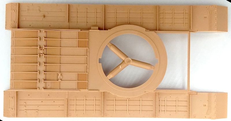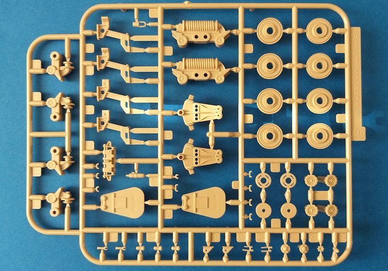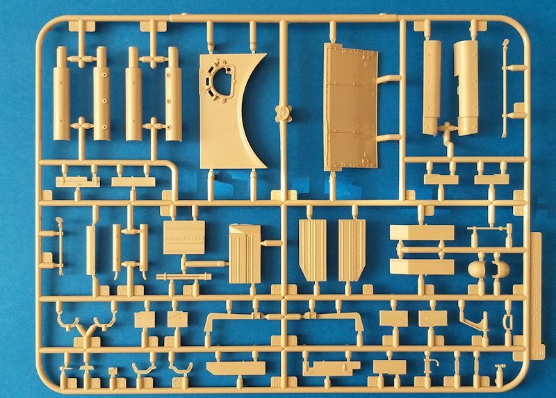 Bausatz: Im praktischen Stülpkarton befinden sich neun verschieden große in Plastik produzierte Spritzlinge, eine Oberwanne, eine Unterwanne, ein Beutel mit Einzelgliederketten, eine Platine mit PE Teilen, Metallfedern, Kupferdraht und ein Decalbogen. Die Bauteile weisen detaillierte Oberflächen mit feinen Gravuren auf. Die Kleinteile bzw. Anbauteile sind hervorragend reproduziert.
