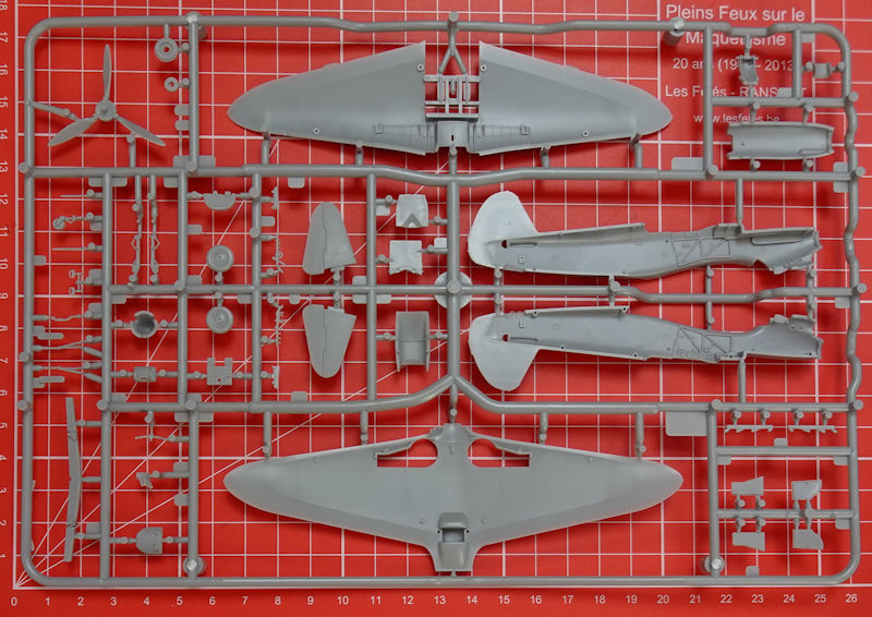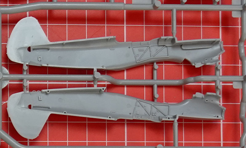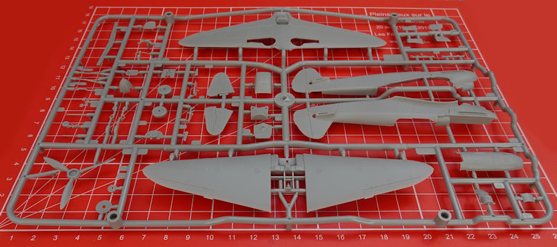 Die Bauteile machen einen sehr guten Eindruck. Es gibt feine versenkte Strukturen, eine schöne dezente Stoffstruktur und sehr feine Details. Der Bau beginnt hier mit dem Cockpit. Auf den Rumpfinnenseiten findet man sehr schöne Strukturen der Rumpfkonstruktion. So sind nicht sehr viele Teile nötig um ein sehr detailliertes Cockpit zu bauen. Das Instrumentenbrett ist im Expert Kit eine Sandwich-Konstruktion. Hier wird das Kunststoffteil als Grundlage für einen Aufbau mittels Decal und Fotoätzteil genutzt. Hier gibt es natürlich auch noch Sitzgurte aus Metall. Das untere Teil des Sitzes, der Steuerknüppel, die Kabinenrückwand sowie die Seitenruderpedale werden auf die Tragfächenoberseite geklebt. Die Fahrwerksschächte hat man natürlich mit Details versehen, die sich auf dem oberen Bauteil befinden. Dieses wird dann mit der unteren Tragflächenhälfte verbunden. Leider gibt es hier keine scharfen Hinterkanten an den Querrudern. Das gilt auch für das Seitenruder.