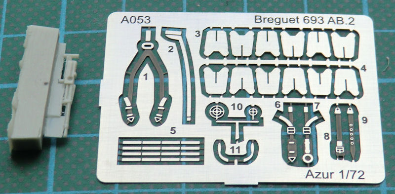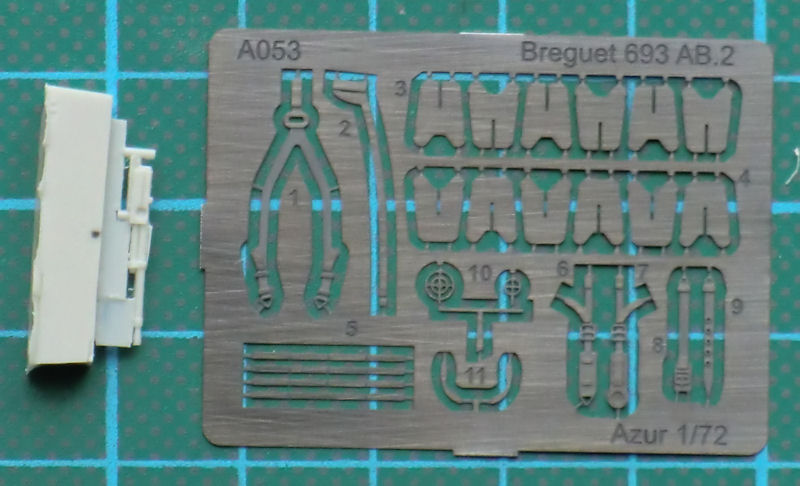 Bausatz: Unter dem Label Azur erscheinen nach und nach die Flugzeuge der französischen Luftwaffe. Nun hat Azur die Breguet Br 690-Reihe fortgesetzt. Es gibt jetzt die Version mit Pratt & Whitney Twin Wasp Junior. Natürlich sind viele Teile mit denen der Breguet 693 identisch. Nur der Spritzling mit den Motoren wurde erneuert. Im stabilen Stülpkarton befinden sich gut verpackt drei hellgraue Spritzgussrahmen mit 87 Bauteilen, ein Resinteil, 16 Klarsichtteile, ein Decalbogen und die Bauanleitung.