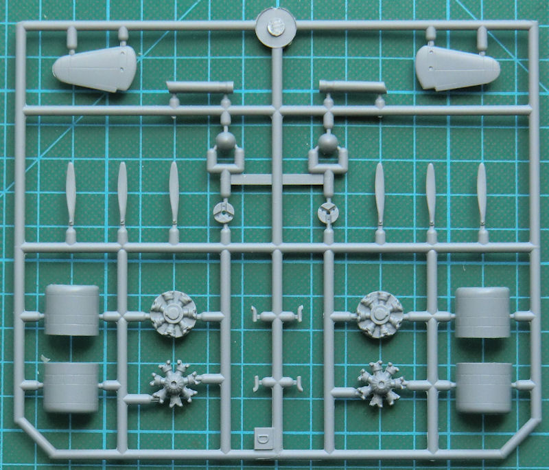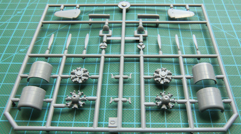Leider gibt es hier keine fantastischen Resinmotore wie bei der 693. Hier müssen simple Spritzgussteile reichen. Diese sind aber für den Maßstab ausreichend gut detailliert. Immerhin sind zwei Sterne vorhanden. Bei der 695 wirkt die ganze Motorpartie durch die anderen Triebwerke deutlich bulliger. Aus fünf Einzelteilen besteht eine Luftschraube. Hier muss bisschen probiert werden. Schön dünn sind die Klarsichtteile. Ich persönlich würde die kleinen Fenster lieber mit Cristal Klear nachbilden.