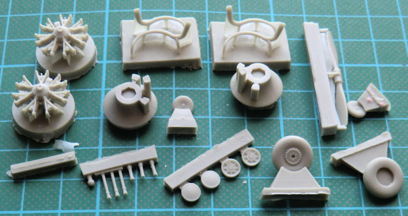 Schnell wird klar, dass uns Azur hier einen typischen Short-Run-Kit liefert. Dieser wird mittels Resin- und Fotoätzteilen aufgewertet. Hier muss aber viel probiert und angepasst werden. Das Cockpit entsteht aus einem Mix aus Fotoätz- und Spritzgussteilen. So gibt es Sitzgurte, feine Pedale oder Steuer und ein strukturiertes Instrumentenbrett aus Kunststoff. Der Abwehrturm ist auch fast ein Bausatz für sich. Zwölf Teile muss man hier verbauen.