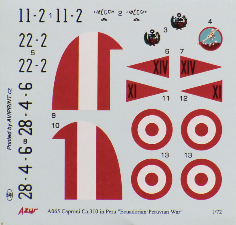 Vorbild: Die Caproni Ca. 310 entstand in Italien vor dem WK II auf der Grundlage des Kolonialflugzeuges Ca. 309. Die Tragfläche bestand aus Holz und der Rumpf war eine Rohrkonstruktion welche größtenteils mit Stoff bespannt war. Einige Bereiche der Konstruktion waren auch mit Metall beplankt. Der erste Prototyp flog am 09. April 1937. Nach fünf zivilen Ca. 310 begann die Produktion der militärischen Mehrzweckmaschinen.