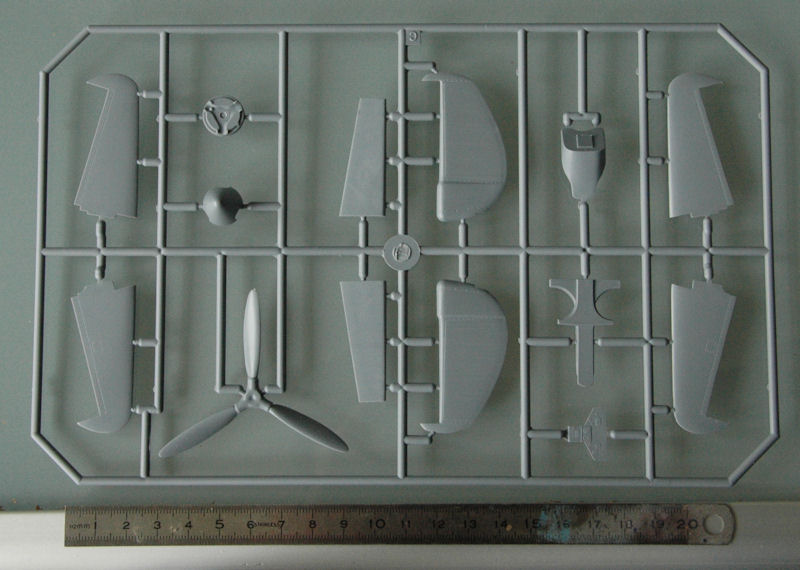 Bausatz: Das Modell macht einen ansprechenden Eindruck, die Oberflächendetails sind sehr fein, die blanken Oberflächen blank – also keine hässlichen Pickel. Die Angüsse an die Spritzrahmen haben eine Stärke, wie man sie erwartet und die Klarsichtteile sind schlierenfrei. Wie üblich bei tschechischer Kleinserie gibt es keine location pins.