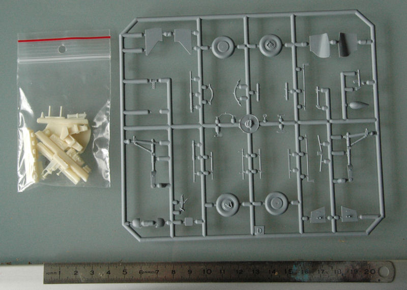 Die Resinteile weisen eine extrem feine Detailierung auf und verlangen ein sehr vorsichtiges Handling. Für das Gerätebrett gibt es kein Ätzteil! Leider auch kein Abziehbild für das sehr gut wiedergegebene Brett in Spritzguss.