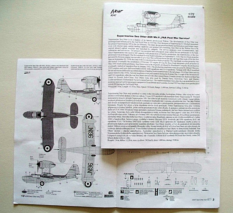 Einer der neusten Bausätze der Firma Azur aus Tschechien widmet sich einem bordgestützten Amphibien-Flugboot aus der Periode der britischen Fleet Air Arm in der Zeit des 2.Weltkrieges: Der Supermarine "Sea Otter".