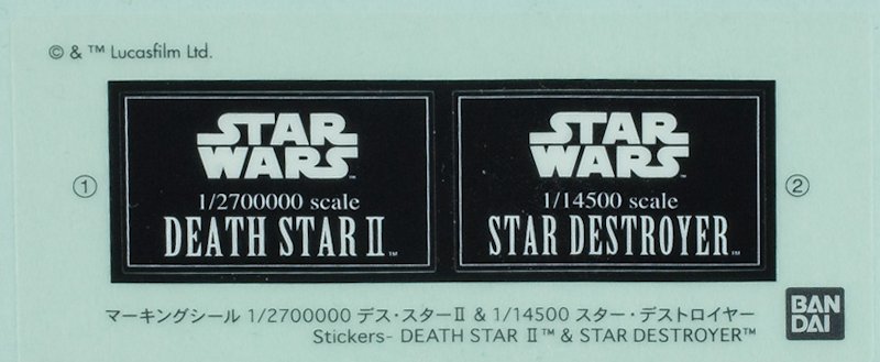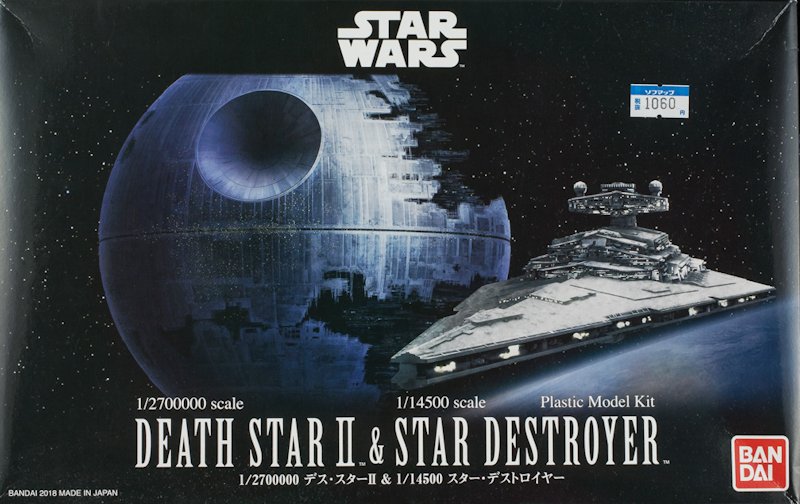 Bausatz: Bandai als Rechteinhaber für Star Wars in Asien setzt seine Serie mit kleinen, handtellergroßen Schiffen aus der klassischen Trilogie fort - hier als Doppelpack mit Todesstern und Sternzerstörer.