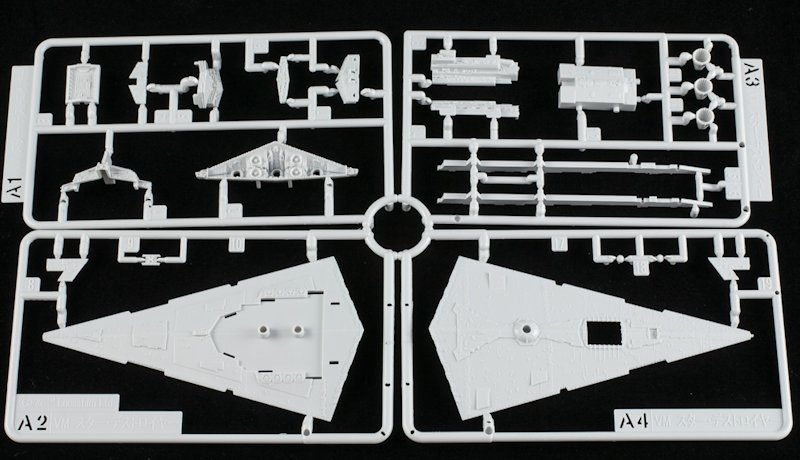 Auch der Sternzerstörer ist klein, aber sehr schön detailliert. Aufgrund der wenigen Teile sollte er schnell zusammengebaut sein. Mit dabei sind zwei gleiche Display-Ständer aus Klarsichtteilen, die mit Aufklebern beschriftet werden können.