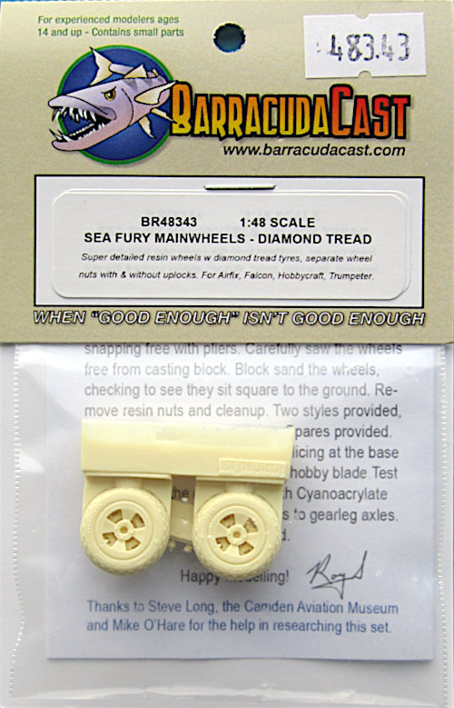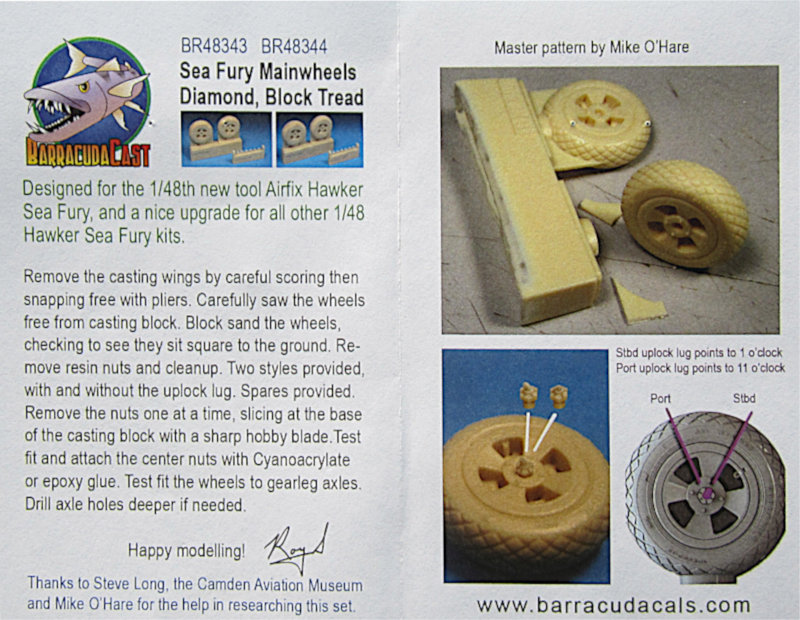 Roy Sutherland aka Barracuda hat für die Sea Fury von Airfix (First Look) eine ganze Reihe von Detailsets herausgebracht. Darunter sind aus zwei Radsätze für die Hauptfahrwerke.