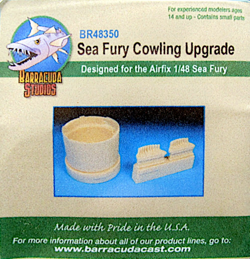 Roy Sutherland aka Barracuda hat für die Sea Fury von Airfix (First Look) eine ganze Reihe von Detailsets herausgebracht. Dieser Satz bietet Ersatz für die etwas untermaßige Motorhaube des Bausatzes und gleichzeitig noch sehr schöne Auspuffstutzen.