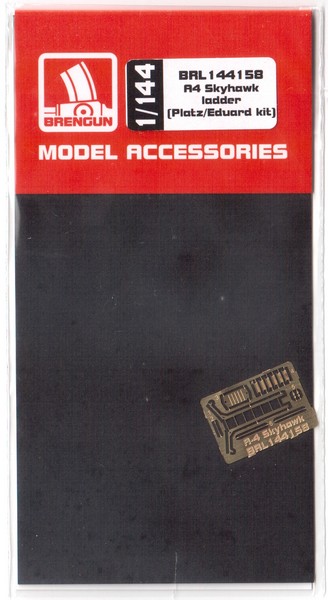 Für die A-4 Skyhawk von Platz/eduard in 1:144 hat Brengun nun eine passende Leiter rausgebracht. Auf der nur etwa 2 cm x 1 cm großen Platine befinden sich immerhin 13 kleine Ätzteile. Aus diesen und einem Stück feinem Draht, welches der Modellbauer selber zusteuern muss, entsteht die Leiter. An Hand dieser Zahlen sieht man schon, dass dies keine triviale Aufgabe ist. Am Ende dürfte es aber ein ca. 18 mm großes Schmuckstück werden.