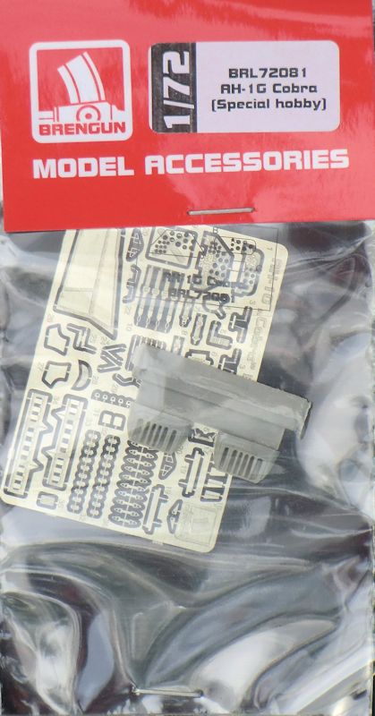 Für die neuen Bausätze der Bell AH-1G von special hobby in 1/72 hat BRENGUN aus Tschechien ein kleines Korrektur- und Detailset herausgebracht. Es enthält zwei kleine Resinteile und eine Fotoätzplatine. Die Resinteile ersetzen die Bausatzlufteinläufe. Im direkten Vergleich fällt der Unterschied schon auf. Brengun liefert hier einen tadellosen Guss der beiden grauen Teile.