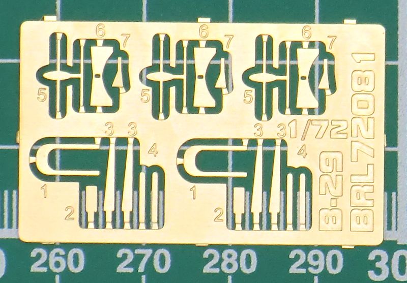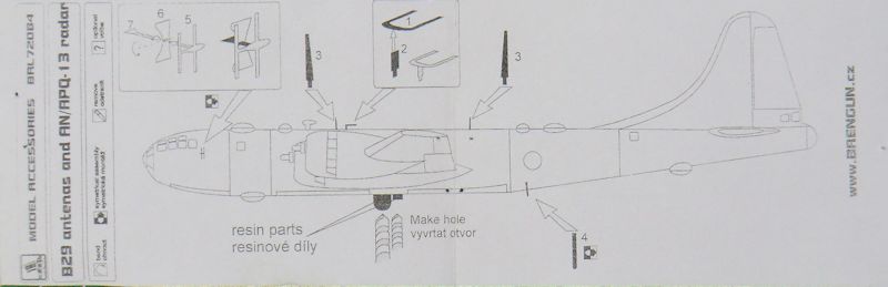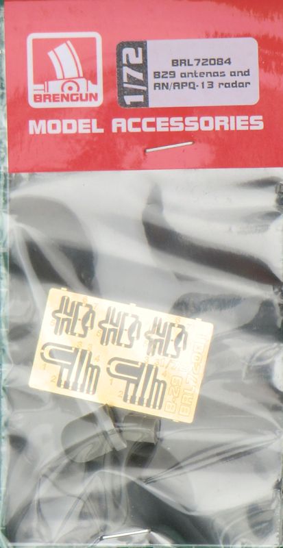 Für die ACADEMY-Bausätze der Boeing B-29 in 1/72 hat BRENGUN ein Umbauset für die Antennen und das FIN/APQ-13 Radar herausgebracht. Es enthält zwei kleine graue Resinteile und eine kleine Fotoätzplatine.
