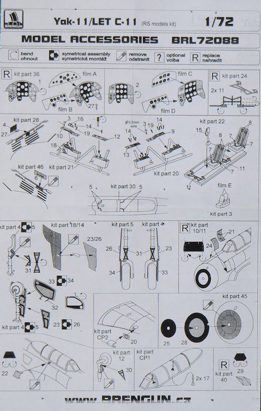 Für den RSmodel-Bausatz der Jak-11/C-11 in 1/72 hat BRENGUN aus Tschechien ein Fotoätzteilset herausgebracht. Es enthält eine Fotoätzplatine und einen Fotofilm.