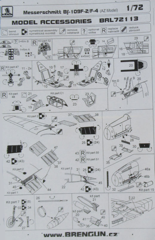 Für die gelungenen Bausätze der Messerschmitt Bf 109F-2/F-4 von AZmodel hat BRENGUN ein Fotoätzteilset im Angebot. In der Tüte befinden sich gut verpackt ein kleiner Metallbogen und ein Fotofilm.