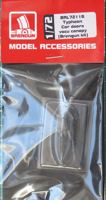 Für die hauseigene Hawker Typhoon im Maßstab 1/72 hat BRENGUN eine passende Vacukanzel herausgebracht. In der typischen unpraktischen Verpackung befindet sich eine Vacukanzel. Weitere Hinweise gibt es nicht.