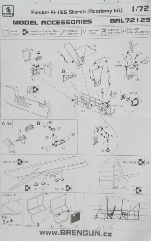 Für den gelungenen Bausatz aber schon fast 20 Jahre alten Bausatz der Fieseler Fi 156 Storch hat BRENGUN ein Fotoätzteilset im Angebot. In der Tüte befinden sich gut verpackt ein kleiner Metallbogen und ein Fotofilm.