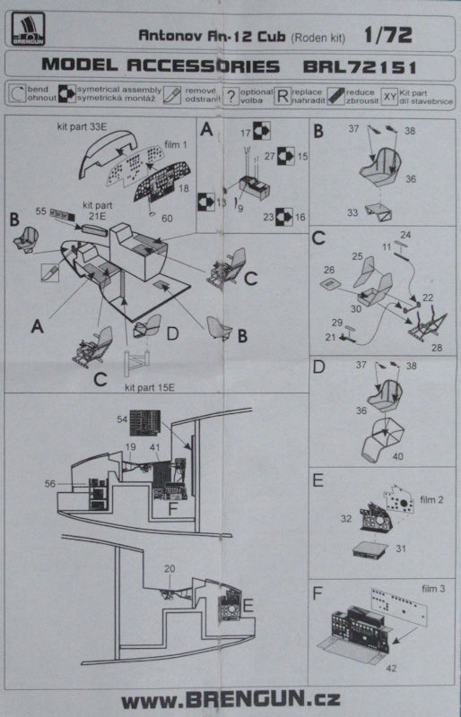 Detailsatz: Brengun legt hiermit ein neues Set für die Antonow An-12 Cub von RODEN im Maßstab 1/72 vor. Es ist nicht identisch mit dem ehemaligen ExtraTech-Set. So gibt es jetzt zwei geätzte Metallbögen und einen Fotofilm sowie die zweiseitige Bauanleitung.