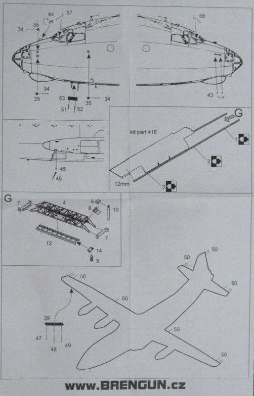 So gibt es ein neues Cockpit. Man findet neue Sitze und die passenden Gurte. Weiterhin liefert Brengun auch ein passendes geätztes Instrumentenbrett samt Fotofilm für die Geräte. Gleiches gilt auch für die Seitenkonsolen. Weiterhin liefert Brengun auch diverse Kleinteile für das Äußere. So findet man auch die obligatorischen Scheibenwischer. Für den Laderaum findet man die Einzelteile für die Laufkatze.