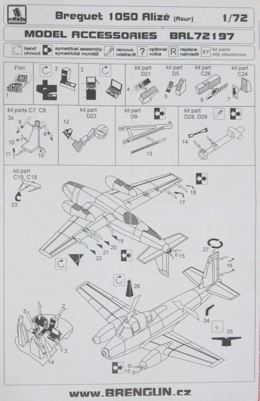 Für die 2016 bei Azur/FRROM erschienenen Bausätze der Breguet 1050 Alize in 1/72 hat BRENGUN ein Fotoätzteilset herausgebracht.