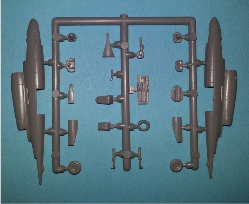 Modell: Mittlerweile ist auch der Kleinserienhersteller Brengun im Plastikspritzguß angekommen. Nach den beiden Erstlingswerken im 1/144 Bereich der Bachem Natter erscheint nun als dritter Bausatz in der neuen Reihe des Herstellers aus Brünn der "Volksjäger". In einem kleinen Schüttkarton kommt der Bausatz zum Käufer. Die zwei grauen und der eine klare Spritzrahmen befinden sich in einem Zipperbeutel. Beim ersten Betrachten fühlt man sich erinnert an Bausätze von Mark1 Models oder auch Attack von früher. Des Rätsels Lösung findet sich dann auch im Jach Logo auf dem Karton. Damit vertraut Jan Sobotka auf die Erfahrung und auch die Qualität, die dieser Urmodell- und Formenbauer in 1/144 hat. Somit dürfte den Modellbauer keine negative Überraschung mit diesem Kit ereilen. Der Eindruck beim Betrachten der Teile lässt mich jedenfalls zu diesem Schluss kommen.