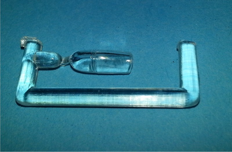 Das Fahrwerk ist auch gut, die Scheren sind massiv, was aber in Spritzguss auch nicht besser geht. Es sind tiefe Fahrwerksschächte vorhanden. Die Fahrwerksklappen sind produktionstechnisch bedingt etwas dick, was aber durch dünner schleifen sicherlich behebbar ist. Die Klarsichthaube hat bei meinem Exemplar einen kleinen "Pickel" auf der Oberfläche. Hier ist etwas Versäuberungsarbeit notwendig. Ansonsten sind aber die Streben gut erkennbar und auch die Klarheit ist annehmbar. Die kleine Lüftungsklappe auf der linken Seite ist nicht nachgebildet, was aber auch fast zu viel verlangt ist.