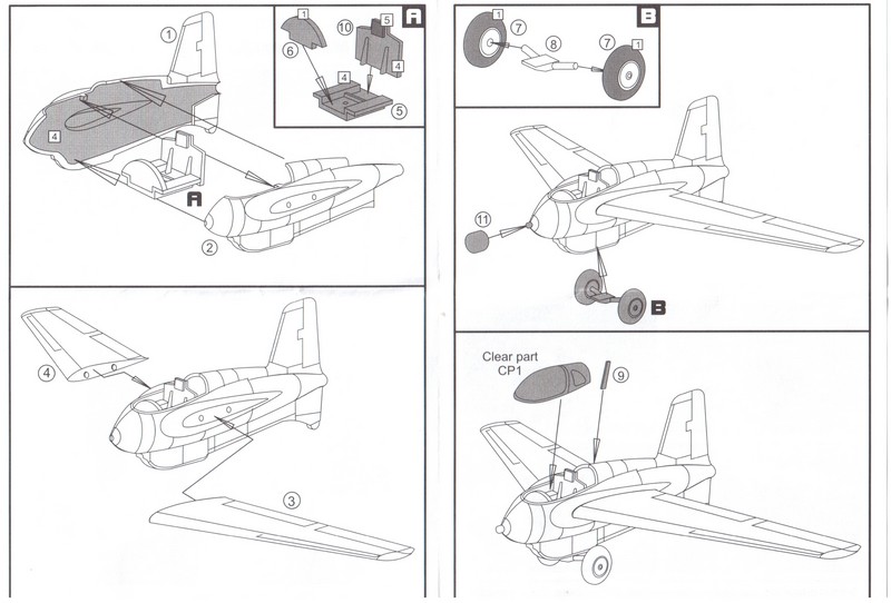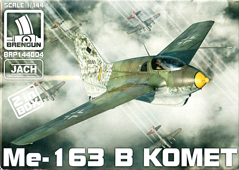 Modell: Nach der Natter und dem Salamander bringt Brengun in seiner neuen Plastiklinie nun die Komet raus und setzt damit die Reihe von Flugzeugen der Reichsluftwaffe aus der Endzeit des Krieges fort. In einem Schüttkarton im typischen Brengun Design finden zwei Spritzlinge aus grauen Kunststoff sowie einer aus klaren in einem Zipperbeutel neben der Bauanleitung sowie dem Abziehbilderbogen Platz. Auf dem Karton findet man den Hinweis auf zwei Modelle nebst dem Logo von Jach. Das spricht für eine gute Qualität der Teile. Gänzlich unbekannt ist die Me 163 in 1/144 nicht, als aktuellster Kit kam vor rund vier Jahre einer von Amory auf den Markt.