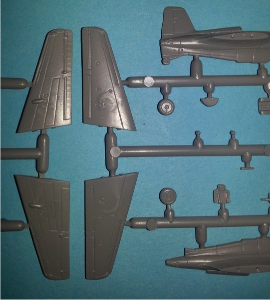 Aufgrund der geringen Größe des Originals reichen ganze 14 Teile, um ein Modell des Kraftei entstehen zu lassen. Beim ersten Betrachten gefallen die gute Oberflächenqualität und die feinen und gleichmäßigen Gravuren. Auch hat man recht überzeugend die stoffbespannten Querruder und Landeklappen dargestellt. Auch wurde an ein Cockpit gedacht, welches später auch noch durch die klare Haube erkennbar sein dürfte. Je nach Gusto kann der Modellbauer sein Modell auf der Kufe oder auf dem Startwagen präsentieren.