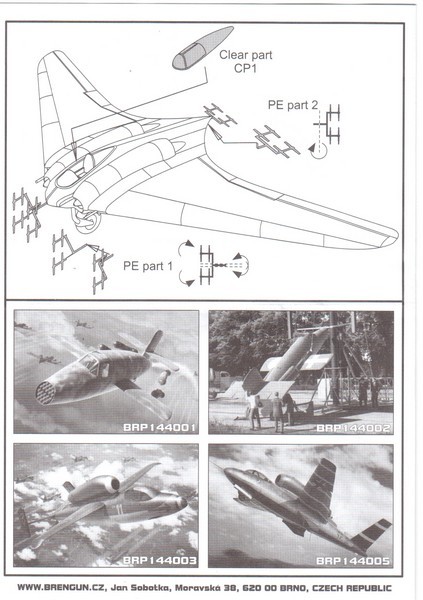 Modell: Brengun nutzt mit diesem Bausatz hier die Möglichkeiten, die so ein Fluggerät aus dem Bereich Luftwaffe 46 bietet und hat mit dem hier vorgestellten Bausatz eine Nachtjäger Variante des Ho 229 Bausatzes (hier) herausgebracht. Interessanterweise hat z.B. Dragon bei seinen 1:48er Bausatz hier eine zweisitzige Ausführung des Nurflüglers vorausgesehen. Der Zweisitzer lässt sich aber wahrscheinlich nicht so einfach umsetzen aus der Form, so dass sich Jan Sobotka hier für einen Einsitzer entschieden hat. Der Phantasie sind ja in diesem Bereich eh wenig Grenzen gesetzt. Somit ergeben sich gegenüber dem ersten Kit keine großen Unterschiede. Der Nachtjäger wird durch die Beigabe von Ätzteilen für die Radaranlage und anderen Decals umgesetzt. Damit gilt bezüglich des Grundbausatzes das von mir bereits gesagte. Für die Antennen des FuG 220(?) Radargerätes werden die sehr feinen Ätzteile des kleinen Bogens aus Messing genutzt. Hier ist etwas diffizile Biegearbeit nötig.