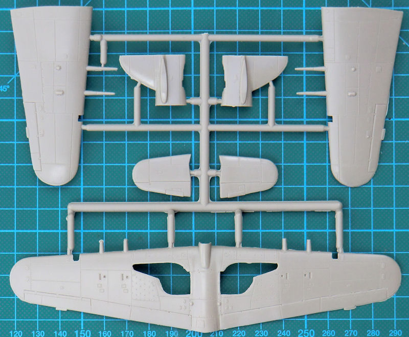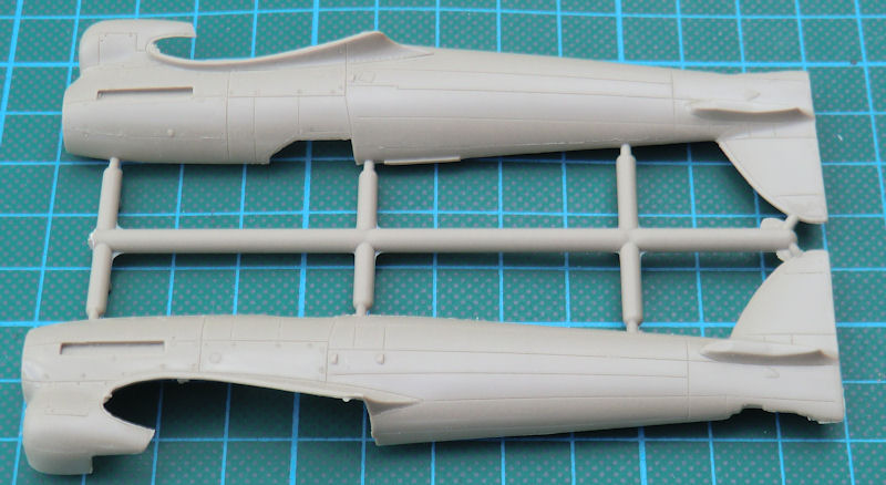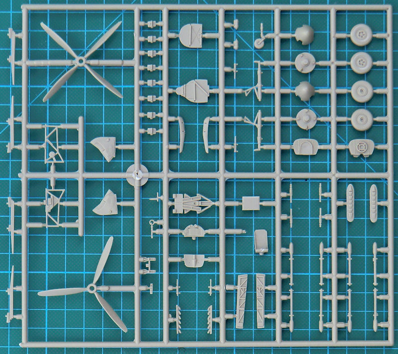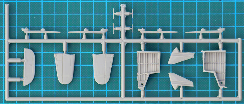 Die Bauteile haben feine versenkte Strukturen und schöne Details. Allerdings sind sie nicht frei von Grat. Der Bau beginnt auch hier mit dem Cockpit. Brengun liefert ein paar Sitzgurte für den Pilotensitz mit. Das Cockpit selbst ist recht komplett. Es gibt selbst ein Rumpfgerüst. Immerhin zehn Spritzgussteile sowie vier Fotoätzteile zu verbauen. Aus sechs Teilen entsteht jeweils ein Hauptfahrwerksschacht. Das Seitenruder gibt es separat und hier ist die Hinterkante scharf. Gleiches gilt für die beiden Hälften des Höhenleitwerks.