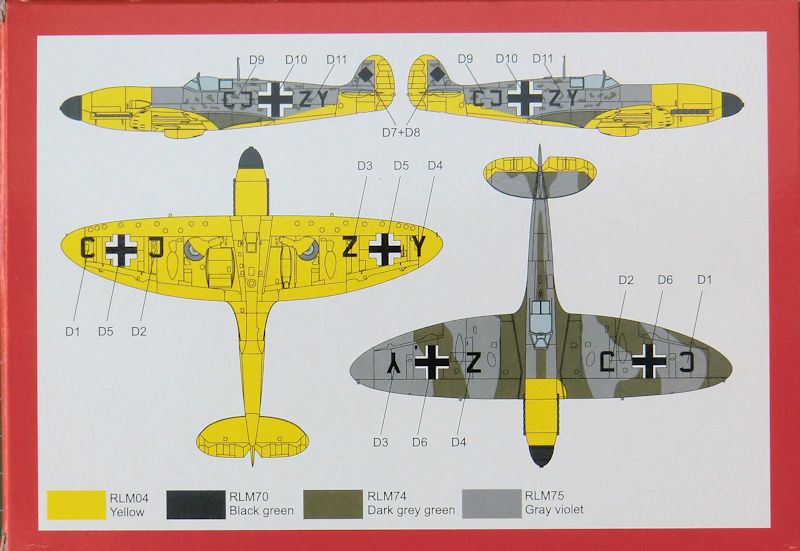 Der kleine Decalbogen war bei mir tadellos gedruckt. Es gibt nur die Kennung und die Hoheitszeichen. Die Farbangaben beziehen sich auf das RLM-Farbsystem. Eine mehrfarbige Übersicht zeigt die vier Seiten der CJ+ZY.