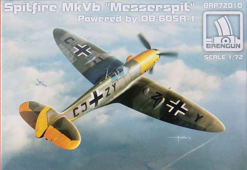 Vorbild: Die Spitfire Vb Serien Nummer EN830, Kennung NX -X fiel am 18. November 1942 in deutsche Hände. Pilot war P / O (Sous Lt.) Bernard Scheidhauer von der Freien Französisch Luftwaffe. Die EN830 wurde durch leichte Flak getroffen und machte eine Notlandung in einem Rübenfeld bei Dielament Manor, Trinity, Jersey. Das Flugzeug wurde praktisch intakt erbeutet und war in einem so guten Zustand, dass es noch im November 1942 nach Rechlin zum Testen überführt werden konnte. Danach erwarb Daimler Benz das Flugzeug.