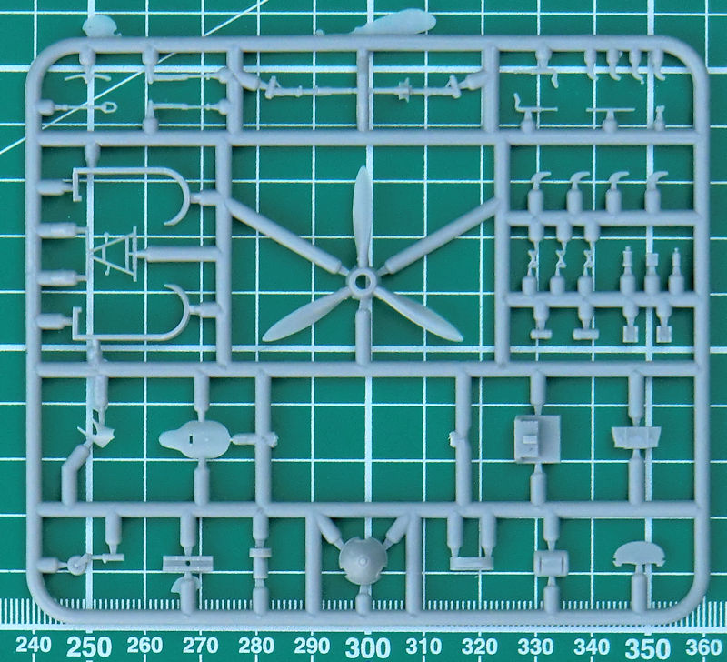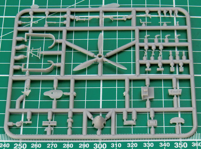Der Bau beginnt mit dem Cockpit. Die Rumpfinnenseiten sind schon mit Details versehen. Diese reichen bis weit hinters Cockpit. Das Instrumentenbrett entsteht aus drei Teilen. Durch das Fotoätzteil besitzt es schöne Strukturen. Leider gibt es keine Sitzgurte. Hier muss man auf das separat erhältliche Set vom gleichen Hersteller zurückgreifen. Durch eine Kombination mit Fotoätzteilen gibt es später Details satt. Der Propeller ist einteilig und wird dann mit dem Spinner verklebt.