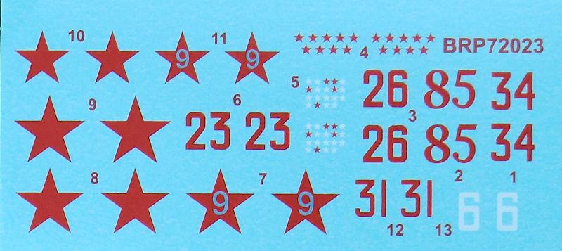 Die Farbangaben sind nur auf Tschechisch und Englisch. Der kleine Decalbogen ist tadellos auf hellblauem Trägerpapier gedruckt. Leider sind die Bemalungshinweise auf der Kartonrückseite etwas zu klein.