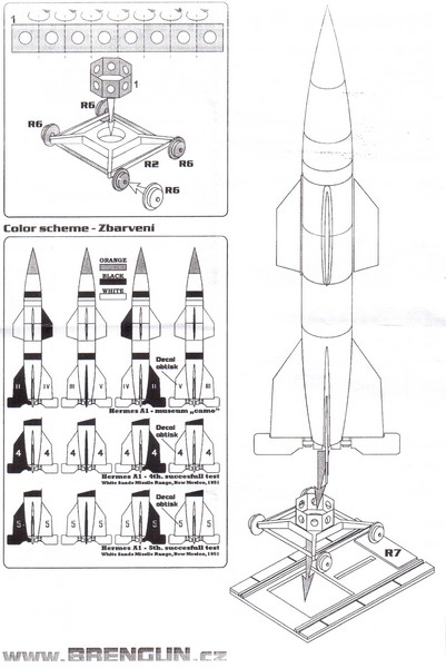 Vorbild: Die Hermes A1 war eine Flugabwehrrakete aus US-amerikanischer Produktion, welche auf der deutschen Wasserfallrakete aus dem zweiten Weltkrieg basierte. Im Rahmen einer Erprobung wurden fünf erbeutete Raketen in den Jahren 1950 und 51 im White Sands Areal in New Mexico erprobt und bildet damit die Basis für alle späteren Flugabwehrraketen.