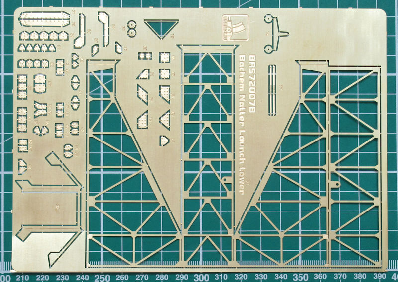 In dem stabilen Karton befinden sich sehr gut verpackt zwei sehr große Fotoätzteile, sieben Resinteile und die Bauanleitung. Diese zeigt sehr schnell wie komplex der Bau dieses Startturms ist. Ohne eine vernünftige Biegevorrichtung sollte man den Bau dieses Models nicht beginnen.