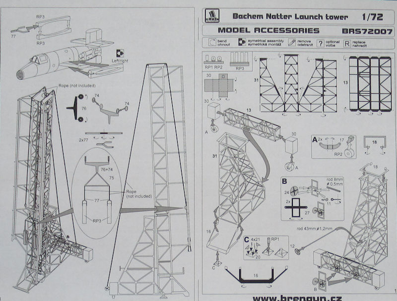 Bausatz: Auf dem Bausatz der Bachem Ba 349M23 Natter von BRENGUN im Maßstab 1/72 ist der Startturm mit dem Versuchsmuster abgebildet. Diesen gibt es nun aus gleichem Hause auch als separaten Bausatz.
