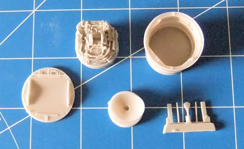 Alle Teile sind aus hochwertigem Resinmaterial gefertigt. Die ausgearbeiteten Details sind scharf und exakt wiedergegeben. Der Bausatz ist CMK-Qualität pur. Geliefert werden die Teile in einer kleinen Klarsichtbox, die auch die notwendige Bauanleitung enthält.