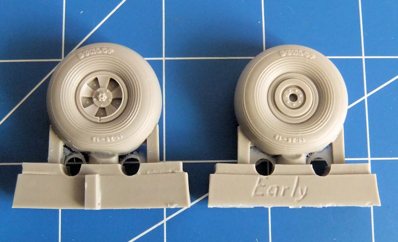 CMK hat auch Räder für Hawker Typhoon Mk.I (PCM) und Tempest Mk.V (SH) in der frühen Version im Produktprogramm. Die Räder sind perfekt gestaltet und auch die Unterschiede zu Rädern späterer Ausführungen werden berücksichtigt. Profile und die Aufschrift Dunlop sind gut gelungen. Die Montage ist einfach.