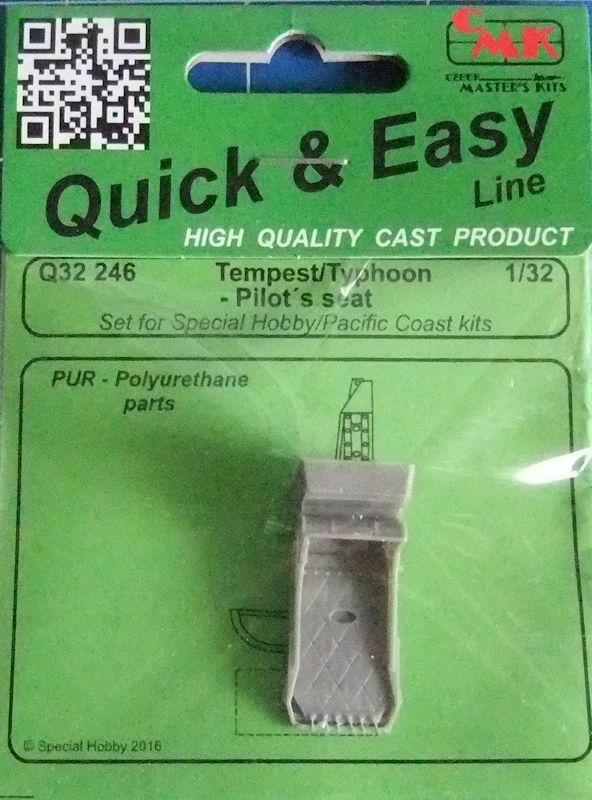 CMK bietet mit diesem Satz einen Pilotensitz für Hawker Tempest von Special Hobby bzw. die Typhoon Pacific Coast Models. Dieser hat jedoch kein aufgeprägtes Gurtzeug. Hier hilft eduard. Bestechend aber sind die Darstellungen der Polsterung und der Verschnürung am oberen Rahmen. Die Detaillierung des Rückens wird wohl leider nicht mehr zur Geltung kommen, wenn der Sitz eingebaut wurde. Aber man weiß, dass der Bereich nicht vergessen wurde.