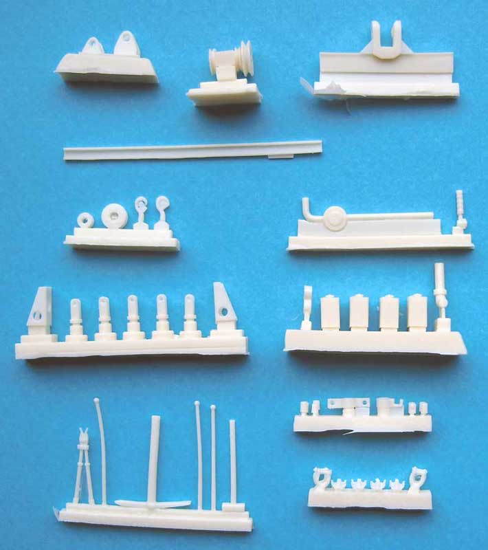 Die "Bergebalken" und alle anderen "Holzteile" zeigen eine feine Holzstruktur die sich beim Bemalen gut herausarbeiten lässt. Bei dem oberen Aufbauteil, das anstelle des Turms auf den Panzer III gesetzt wird, muss beim Schleifen der Unterseite darauf geachtet werden, dass diese absolut plan wird - ansonsten wird der Aufbau schief ...